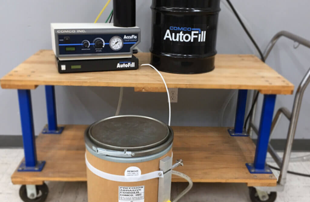 AutoFill replenishes the abrasive in your tank automatically so you never have to stop working to refill. AutoFill is an add-on module for the Tall-Tank model AccuFlo.