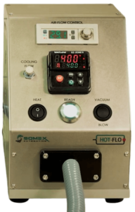 The Somex Automation Hot-Flo Heat Box is a benchtop Catheter Hot Air Nozzle System. The Heat Box features a digital readout of airflow, a ready lamp for temperature and airflow, and options for Enhanced Control & Monitoring of process parameters. It is available in two configurations: Compact and Umbilical.